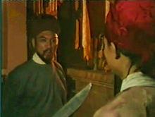 電視劇《三俠五義》花蝴蝶誰知看守蔣爺的二人吃飯回來,見空房子門已開了,道士也不見了。一時驚慌無措,忙跑到廳上,報與花蝶鄧車。他二人聽了就知不好,也無暇細問。花蝶提了利刃,鄧車摘下鐵把弓,挎上鐵彈子袋,手內拿了三個子彈。剛出廳房,早見北俠持刀已到。鄧車扣上彈子把手一揚,峻的就是一彈。北俠知他彈子有工夫,早已防備。見他把手一揚,卻把寶刀扁著一迎,只聽當的一聲彈子落地。鄧車見打不著來人,一連就是三彈,只聽“當”“當”“當”響了三聲,俱各打落在地。鄧車暗暗吃驚,說:“這人技藝超群。”便順手在袋內掏出數枚,連珠發出,只聽“丁當”“丁當”猶如打鐵一般。 旁邊花蝶看的明白,見對面只一個人並不介意。他卻腳下使勁,一個健步,以為幫虎吃食,可以成功。不想忽然腦後生風,覺著有人。一回頭,見明晃晃的鋼刀劈將下來,說聲“不好!”將身一閃,翻手往上一迎。那裡知道韓爺勢猛刀沉,他是翻腕迎的不得力,刀對刀只聽咯噹一聲,他的刀早已飛起數步,噹啷啷落在塵埃。花蝶那裡還有魂咧,一伏身奔了角門,往後花園去了,慌不擇路,無處藏身,他便到葡萄架根下將身一蹲,以為他算是葡萄老根兒。他如何想的到架上頭還有個人呢。 蔣爺在架上,四肢剛然活動,猛聽腳步聲響。定睛細看,見一人奔到此處不動,隱隱頭上有黑影兒亂晃,正是花蝶。蔣爺暗道:“我的鋼刺被他們拿去,手無寸鐵。難道眼瞅著小子藏在此處,就罷了不成?——有了,我何不砸他一下子,也出一出拷打的惡氣。”想罷,輕拳兩腿,緊抱雙肩,往下一翻身,噗哧的一聲,正砸在花蝶的身上,把花蝶砸的往前一撲,險些兒嘴按地。幸虧兩手扶住,只覺兩耳嚶的一聲,雙睛金星亂迸,說聲:“不好!此處有了埋伏了。”一挺身,踉里踉蹌,奔那邊牆根去了。 此時韓彰趕到,蔣爺爬起來道:“二哥,那廝往北跑了。”韓彰嚷道:“好賊!往那裡走?”緊緊趕來,看看追上。花蝶將身一縱,上了牆頭。韓爺將刀一搠,花蝶業已躍下,“咕嘟”“咕嘟”往東飛跑。跑過牆角,忽見有人嚷道:“那裡走?龍濤在此!”嗖的就是一棍。好花蝶!身體靈便,轉身復往西跑。誰知早有韓爺攔住。南面是牆,北面是護莊河。花蝶往來賓士許久,心神已亂,眼光迷離,只得奔板橋而來。剛剛到了橋的中間,卻被一人劈胸抱住,道:“小子,你不洗澡嗎?”二人便滾下橋去。花蝶不識水性,那裡還能掙扎。原來抱花蝶的就是蔣平。他同韓彰躍出牆來,便在此橋埋伏。到了水中,雖然不深,他卻掐住花蝶的脖項,往水中一浸,連浸了幾口水,花蝶已然人事不知了。 此時韓爺與龍濤馮七俱各趕上。蔣爺托起花蝶,龍濤提上木橋,與馮七將他綁好。蔣爺竄將上來,道:“好冷!”韓爺道:“你等繞到前面,我接應歐陽兄去。”說罷,一躍身跳入牆內。 且說北俠刀磕鐵彈,鄧車心慌,已將三十二子打完,敵人不退,正在著急。韓爺趕到,嚷道:“花蝶已然被擒。諒你有多大本領。俺來也!”鄧車聞聽,不敢抵敵,將身一縱,從房上逃走去了。北俠也不追趕,見了韓彰,言花蝶已擒,現在莊外。說話間,龍濤背著花蝶,蔣爺與馮七在後,來到廳前,放下花蝶。蔣爺道:“好冷,好冷!”韓爺道:“我有道理。”持著刀往後面去了。不多時,提了一包衣服來,道:“原來姓鄧的並無家小,家人們也藏躲了。四弟來換衣服。”蔣平更換衣服之時,誰知馮七聽韓爺說後面無人,便去到廚房將柴炭抱了許多,頓時點著烘起來。蔣平換了衣服出來,道:“趁著這廝昏迷之際,且鬆了綁。那裡還有衣服,也與他換了。天氣寒冷,若把他噤死了,反為不美。”龍濤馮七聽說有理,急忙與花蝶換妥,仍然綁縛,一壁控他的水,一壁向著火,小子鬧了個“水火既濟”。 韓爺又見廳上擺著盛筵,大家也都餓了,彼此就座,快吃痛飲。蔣爺一眼瞧見鋼刺,急忙佩在身邊。只聽花蝶呻吟道:“淹死我也!”馮七出來,將他攙進屋內。花蝶在燈光之下一看:見上面一人碧睛紫髯;左首一人金黃麵皮;右首一人形容枯瘦,正是那個道士;下面還有個黑臉大漢,就是鐵嶺觀被擒之人。看了半日,不解是何緣故。只見蔣爺斟了一杯熱酒,來到花蝶面前,道:“姓花的事已如此,不必遲疑。你且喝杯熱酒暖暖寒。”花蝶問道:“你到底是誰?為何與俺作對?”蔣爺道:“你作的事,你還不知道么?拈污婦女,造孽多端,人人切齒,個個含冤。