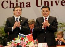 中國國務院總理溫家寶會見巴羅佐溫家寶總理說,近10年來,中歐之間的了解和信任明顯加強,構建了全方位、寬領域、多層次的合作框架,戰略夥伴關係內涵不斷豐富和深化。雙方確立了40多個對話磋商機制,涉及政治、經濟、金融、科技、能源、文教等40多個領域。即將啟動的中歐經貿高層對話將成為雙方增進互信、實現互利共贏的又一個重要平台。歐盟是中國最大的經濟貿易和科技合作夥伴。中歐務實合作給雙方帶來了巨大的利益,促進了世界和平與發展。