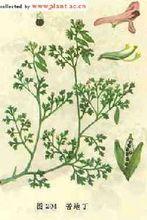 【性狀】:為乾燥皺縮全草,長5~10厘米,葉具長柄;葉片3回羽狀深裂,裂片狹細。葉腋有淡紫