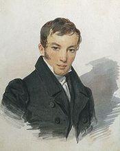 瓦·安·茹科夫斯基(1820年)茹科夫斯基被公認為俄國浪漫主義詩歌的奠基人。他的詩著重描寫內心生活、夢幻世界、對自然的感受,也常取材於民間流傳的神話故事(如悲歌《黃昏》,1806《捷昂與艾斯欣》,1815故事詩《柳德米拉》,1808《斯維特蘭娜》,1808~1812《十二個睡著的姑娘》,1817)。
