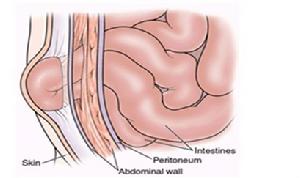 多數的疝是由於腹腔內的小腸通過腹壁上某個先天或後天形成的薄弱部位,突出到腹壁表面形成一個