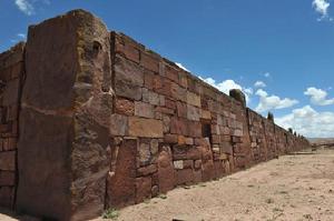 的的喀喀鎮的蒂亞瓦納科遺址範圍較廣,長約1000米,寬450米,是一古老的建築群。