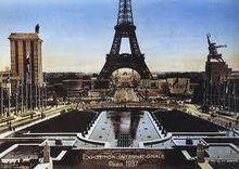 巴黎博覽會全景1937年,“國際藝術、技術與現代生活博覽會”在巴黎舉行,穆希娜為蘇聯展覽館大廈創作了這件大型雕塑。作品一經問世,立刻獲得了世界性的聲譽。蘇聯展覽館是長方形的大廈,其體積逐漸向前廳正面增高,形成一座高拱門,同時,也是這件作品的基座。雕塑在基座上高達30多米,側面望去仿佛凌空飛翔,雄健而輕捷;從後看去,又象是正在疾飛遠逝。整個作品造成了一種獨特的運動感。
