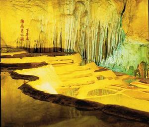 萬華岩(坦山)的自然資源豐沛富積,品味奇高,1978年開發,1987年5月1日對外開放,90年列入第一批省級風景名勝區,大型地下河洞溶洞為景區主要景點,主支洞已探明九公里多,地下河已知總長8公里多,現在開放的主洞長2245米,三個進出口,十二個迷離怪異的大廳,二十三個景點,支洞在主洞430米處,洞內石景別致,洞中三大瀑布神秘莫測令人神往,洞內一般寬度在15~20米,最寬處110米,高度一般在10~20米左右,最高處30米,地下河貫穿始終,空氣清新流暢,四季恆溫在190C左右,溶岩景觀鬼斧神工,兩壁鐘乳石,若飛禽走獸,似萬樹千花凡塵不染,千姿百態,栩栩如生,溶洞景觀岩石無論大小,處處雄風大氣,陽剛十足,赤壁倒懸,險峻無比,造型奇絕,特色鮮明。洞中有洞,處處晶瑩剔透,一脈柔情,石獅、石鶴、石樹、石花、石鐘、石幔、石田,有的象“水底龍宮”;有的似“瑤池果樹”、“鯤鵬展翅”、“巨蟒捕食”,有的則如“觀音坐蓮”、“玉女垂幃”,可謂是奇景芬芳,別具一格。岩溶精品,要數湛稱世界奇寶的“水下晶錐”,1988年3月中美聯合溶岩考察隊一行12人來萬華岩進行為期一周的考察後,贈錦旗一面,讚美萬華岩是“世界上最美麗的洞穴之一,她可以與世界上所有漂亮的溶洞媲美。”具有頗高的岩溶科研、旅遊觀光、洞穴探險價值。但蓋世絕景是2000年10月中國科學院地理研究所宋教授一行來萬華考察,發現的“石蛋生筍”,目前世界上屬首次發現,其價值是不可估量的。