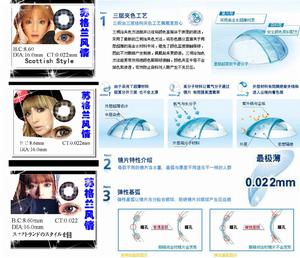 三明治夾色方法拋棄以往將顏色直接塗於表面的做法,採用了最新的三明治夾色方法,將彩色部分直接夾於兩層超薄的高含水材料中間,避免了顏色直接接觸眼球,因此不對眼睛產生刺激,佩戴起來更舒。三明治加色方法能更有效根絕顏色跟眼球接觸,顏色夾在中層不會掉色和滲透,有效防止染料對人眼產生不良反應。