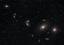 室女座星系團在東次將( ε Vir)以西5°至10°就是 室女座星系團,當中包括M49(橢圓)、M58(螺鏇)、M59(橢圓)、M60(橢圓)、M61(螺鏇)、M84(橢圓)、M86(橢圓)、M87(橢圓;著名的射電源)及M90(螺鏇)。