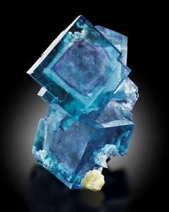 | 孿晶 | 螢石在{111}晶面族上,多為互相穿插的立方晶體,也有形成尖晶石雙晶律的情況 | 晶體形態 | 常為立方體{001},有時為八面體{111},十二面體{011}較為少見,亦有六八面體和二十四面體偶爾出現。以上形狀的聚型晶體也經常發生。{001}平滑具光澤;{111}粗糙無光澤。從{013}開始,晶體的不均勻發展有時會使晶體變形,如微小的立方晶體聚合生長成一個較大的八面體,或於早期生出的單晶的角落處形成一塊過度生長的較大晶體。其他形狀的結晶還有泥土狀、柱狀、球狀或葡萄狀 |