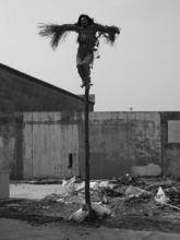 《稻草人》王軍大陸行為藝術初起於八五時期“廈門達達”的藝術活動,至八九年北京現代藝術展可視第一階段。此一時期出現了不少藝術家包裹自身的東西,如魏光慶模擬臥軌自殺,其作品的抗議性在八九年後詩人海子在山海關臥軌自殺身亡後更值得加以追認。其實在八九年現代藝術展上,真正引起強烈反響的恰恰是行為藝術,如蕭魯槍擊電話亭、張念孵蛋、吳山專賣蝦以及至今匿名的假裝爆炸中國美術館等等。其中蕭魯的槍擊之所以影響巨大,原因是那一聲槍響,不僅擊碎了伊斯堤思式的電話亭,宣告了中國當代藝術挑戰歐美中心的必要性,而且作為一種巫術式的預言,揭示了中國政治專政的鐵血現實。