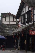 崇州市街子鎮(圖8)從仿古牌坊(即下場口)進入沿河一條長約600米的古街,現名江城街。此街經三個古街口及戲台廣場直至廊橋(上場口),再往前可到御龍橋東。古街自明代街子場延續至今,現已妝點一新:明清建築風格的房屋鱗次櫛比,高低參差錯落有致,朱紅色的穿斗圓木結構,木柱木門板、花格木窗全部油漆一新。600米長街全鋪整齊的青石板路,氣勢磅礴大氣,路兩側街沿溝內有清水絹絹流淌,隨時可滌去街面灰塵。家家戶戶紅燈高掛對聯盈門,每隔幾戶街上放置精美的木雕花架,其上是清新淡雅的蘭花盆景,幽香撲鼻令人陶醉。此街上有遠近聞名的“老號湯麻餅”,湯麻餅始創於清朝,清乾隆51年(公元1786年),崇州街子鎮南場口頭腦聰慧的鄉民湯仕元成立了一家以製作素點心為主的手工作坊長發祥號(寓意湯家長發財、長吉祥),創造出了一種麻餅,即後來享譽川西的名小吃“湯長發”麻餅。這種麻餅採用上等麵粉、白糖、冰糖、菜油、芝麻等為原料,經制皮、制心、制油、制酥等特殊工藝程式後,製作成圓型,然後粘上脫皮芝麻,烘烤而成。因其火工精當,黃而不焦,皮酥心脆,香甜化渣,上世紀四十年代被列為當時蜀州四大名小吃(天主堂雞肉、致華堂白雪糕、石觀音板鴨和湯長發麻餅)之一。此外本街還有經營古玩、雕刻、玉器等小店。街子鎮類似的古街還有五六條。