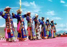 裕固族服飾裕固族男子服飾比較簡單,但也有其獨特之處。男子頭戴金邊白氈帽,帽沿後邊捲起,後高前低,呈扇面形。也有的帽沿鑲黑邊,帽頂正中有在藍緞上金線織成的圓形或八角形圖案。身穿大領偏襟長袍,富裕人家多用布、綢,緞和紫紅色氆氌等料縫製,貧窮人家多用牡羊毛捻毛線織成的褐子縫製。冬季,多穿用綢、緞、布料做面的長袍,差些的則穿白板皮襖或褐面軟氈里的氈衫過冬。男子一般都扎大紅腰帶,腰帶上佩五寸腰刀、火鐮、鼻煙壺。衣襟上無論單棉都用彩色布或織錦緞鑲邊,富人還用水獺皮鑲外邊。單、夾袍下擺左右開衩,在衣衩和下擺處鑲邊。上年紀的老人,腰間掛有香牛皮縫製的煙荷包。荷包呈長脖大肚花瓶狀,底部垂紅纓穗,荷包上還帶有弩煙針和銅火盅。旱菸鍋是用一尺多長的烏木桿,裝上玉石或瑪瑙菸嘴、青銅或黃銅煙鍋頭,總長二尺左右,平時從脖子後面插入衣領,菸嘴要齊耳露在領邊。裕固族男子,逢年過節或遇重大活動,長袍上面要罩件青色長袖短褂,左右開小衩。