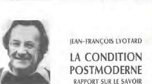讓-弗朗索瓦·利奧塔在《後現代狀況》一書中,利奧塔的論述圍繞著科學話語和科學知識中敘事的功能這一問題展開。他對科學知識及其方法本身興趣不大,而是更多地關注它們獲得正當性或要求得到合法性所採取的形式。