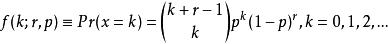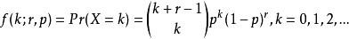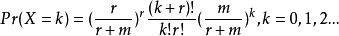 就像之前,我們說X服從負二項分布(或者波利亞分布),如果它有一個如下所示的機率密度函式: