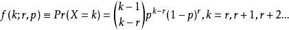 當 r是整數時,負二項分布又稱 帕斯卡分布(巴斯卡分布),其機率質量函式為(其中一種形式,兩種形式對比看下文):