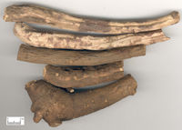 ④具緣紋孔或網狀具緣紋孔導管直徑20-60μm,穿孔板有1-3個穿孔。此外有棕色木栓細胞及細小澱粉粒。