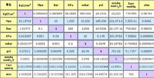 1大氣壓(at m)= 101.325千帕(KPa)=0.101325兆帕(MPa)=14.696磅/英寸2(psi)=1.0333千克/厘米2(kg/cm2)=1.0133巴(bar)