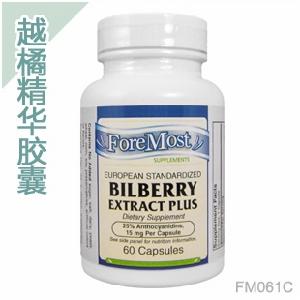 ForeMost越桔Bilberry(歐洲越桔)精華提取物富含"類黃酮複合物"和"花青素",這些活性成分可維護視網膜,增強其對光亮和黑暗的適應性,調整夜視能力。越桔中的花青素強力抵禦環境中的不良因子,並特別具有抗氧化功能,來幫助維持眼睛循環的順暢,可增強毛細血管,維護健康的結締組織和微循環。常保視力清晰和健康。