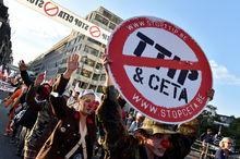 比利時民眾抗議跨大西洋貿易與投資夥伴協定當地時間2016年9月20日,比利時布魯塞爾,由於跨大西洋貿易與投資夥伴協定是為了降低貿易區域內的價格,對國民不利,當地民眾參加遊行, 抗議跨大西洋貿易與投資夥伴協定與全面經濟貿易協定。