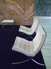 密斯設計的椅子 與柯布西耶一樣,密斯在1908-1911年間與著名建築大師彼得·貝倫斯一起工作,並從中學到了相當多的東西。後來,他又採納了包浩斯建築學派的風格,並繼承了瓦爾特·格羅皮烏斯(Walter Gropius)遺留的風格。