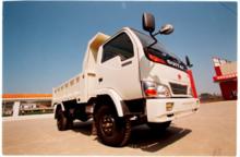 ④長頭四輪農用運輸車:駕駛室為長頭式,2門或4門,2~5個座位,發動機為多缸機,有自卸和非自卸兩種型式的貨廂,傳動型式為軸傳動式。