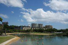 市區的中心設在達爾文港口北邊的狹長島上,市郊沿港口擴展,主要大道史密斯街長約20公里,街道兩旁棕櫚樹、桔紅色蝴蝶花樹和白色素馨花樹蔽日成蔭,景色秀麗。郊區的范尼灣,原為流放囚犯之地,建有監獄,後成為居民區和消暑休憩之處。
