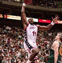 1996年亞特蘭大奧運會,卡爾·馬龍代表美國男籃“夢三隊”參加了奧運會賽事。在決賽里美國隊以95-69擊敗南斯拉夫奪冠,那屆奧運會裡夢三隊場均得到102分,場均淨勝對手31.7分,場均只讓對手得到70.3分 。