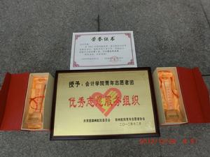 - 2012年12月5日---我團在鄭州航院第一屆志願活動評審表彰大會上,獲得鄭州航院“優秀志願服務組織獎”,“愛是一朵神奇的七色花”與“愛心自習室”兩個活動獲得了“優秀志願服務項目獎”。