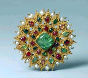金嵌珠寶圓花,清朝時期歷史文物,直徑7cm,為古代婦女頭上的飾品。