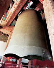 永樂大鐘北京的大鐘寺,原名覺生寺,覺生寺的大鐘是明代永樂年間鑄造的,所以叫“永樂大鐘”。銅鐘懸掛在大鐘樓中央巨架上,通體褚黃,高6.75米,直徑3.7米,口外徑3.3米,重46.5噸。鍾唇厚18.5匣米,鐘體光潔,無一處裂縫,內外鑄有經文230184字,無一字遺漏,鑄造工藝精美,為佛教文化和書法藝術的珍品。