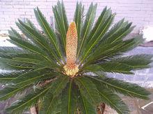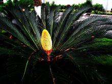 而且,鐵樹是裸子植物,到達一定的樹齡,自然會開花,不開反而不正常。雄花很大,像一個巨大的玉米芯,剛開放時呈鮮黃色,成熟後漸漸變成褐色;而雌花卻像一個大絨球最初是灰綠色,以後也會變成褐色。