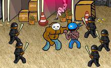 蒙面槍手:生命較高,行動速度一般,持g36或ak47中遠程射擊,近戰用刀刺殺(有秒殺的危險),一彈損10HP值,一刀損20HP值.
