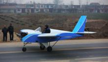 昨日16時,楊偉民坐進了駕駛艙,由他來進行首次試飛。伴著發動機巨大的轟鳴聲,飛機在公路上滑跑了兩圈,在眾人企盼的目光中,終於騰空而起,向遠處盤鏇而去。在天空繞了一大圈後,回到跑道,慢慢降落,緩緩滑行,穩穩停下。