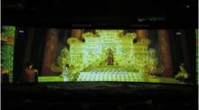 進入景區,首先看到的是二樓的環幕影廳,明堂二層的3D全景540度影院主要通過現代電影的尖端科技手段,營造出目前全球獨一無二的全景範圍3D虛擬場景,使觀眾產生身臨其境的觀影感受。這樣的全景影院,結合著明堂遺址保護工程的特有建築造型,通過科技改造,實現超過540°全覆蓋投影,使之成為了目前世界上覆蓋最全面的3D多媒體影廳,其覆蓋角度超過北京《中國科技館》球幕影院180°之多。影廳採用12台巴可頂級高清數字設備。配合特別定製的光纖傳輸主動式三維立體眼鏡,該眼鏡曾被軍方用以模擬特種部隊野外實戰演習。當觀眾帶上特製的立體眼鏡,就能欣賞到呼之欲出、栩栩如生的立體影像。(圖像都是3D的效果,具體的感官還是需要本人親自體驗的,在此就不多說了)。