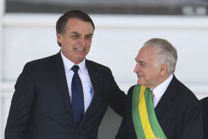 演說結束後,博索納羅與夫人米歇爾·博索納羅乘敞篷車前往總統府“高原宮”,一路上向10多萬從全國各地趕來的支持者頻頻揮手致意。在總統府舉行的就職典禮上,博索納羅從卸任總統特梅爾手中接過象徵總統權力的綬帶。而後,他面向聚集在三權廣場上的民眾再次發表演說。