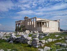 埃雷赫修神廟(Erechtheum Temple)於公元前406年建成,位於帕特農神殿的對面,是建築優美的愛奧尼式神殿,集雅典娜與海神波賽頓兩座神室合一的複合造型。
