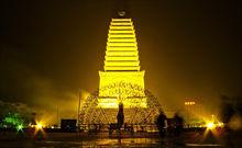 朝陽南塔朝陽南塔, 高約40米,是一座方形空心十三層密檐式磚塔,建在一個寬大的方形磚座之上。塔身的南面辟有一券門,可直通塔心,其它三面設假門,門楣飾有捲雲紋,門兩側上部各鑲有一塊石碑,刻有八大靈塔的名稱。八大靈塔的內容反映的是佛祖釋迦牟尼從出生到圓寂一生之中的重大活動。在第一層塔檐的拱眼壁上原供有一尊禪定初祖菩提達摩的石坐像,坐像的造型為普通僧人形象,身披袈裟,手捧經卷,盤膝打坐。這尊精美石像,現珍藏於朝陽市博物館。