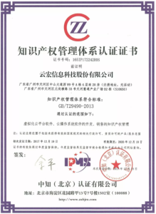 雲宏信息科技股份有限公司智慧財產權管理體系認證證書2018年:通過CMMI5評估認證;虛擬化系統通過國家保密科技測評中心檢測並獲得涉密系統產品檢測書。