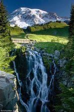雷尼爾山國家公園建立日期:1899年,面積:950平方公里,地形:火山峰、山麓丘陵、山谷與峽谷,主要景點:埃蒙斯冰川