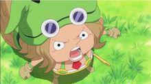 第一次嘗試將辣椒球放進砂糖的葡萄盆之中時,由於羅賓發現托雷波爾將蒼蠅一擊爆頭,擔心雷歐,所以阻止了他。由羅賓將托雷波爾調虎離山,雷歐第二次嘗試將辣椒球放進砂糖的葡萄盆成功。然而砂糖並沒有吃,且試圖欺騙雷歐他們,由於烏索普在後面提醒,雷歐率領同胞們和砂糖戰鬥,最先衝上去的小人族被砂糖變成了玩偶,雷歐等人失去了變成人偶的夥伴的記憶,並將他們當成敵人而戰鬥。