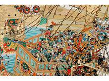 露梁海戰戰至中午,陳璘派水師副將陳蠶、游擊季金率部來援。與此同時,中朝聯軍水師左右兩路分別從南北兩個方向,向大島以東海面之日船隊主力,展開了猛烈的攻擊。