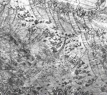“大敗倭寇圖”(局部)此時,駐泗川、新城之日軍第五軍主力,在島津義弘率領下,已經登船,只待漲潮出發,駛往巨濟島。島津義弘接到小西行長的求援信後,當即率領這支龐大的船隊,於十八日夜乘月色向露梁海峽疾駛,企圖突入光陽灣,解小西行長之圍。中途與從南海開來之宗義智部船隊會合。兩支船隊會合後,共有兵力千餘人,艦船約500艘,於午夜開始通過露梁海峽。