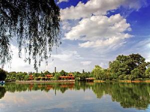 位於武廣高鐵與三環線高架下的戴家湖公園,是武漢中心城區規模最大的綜合性公園。公園占地約50萬平方米,綠化面積達42萬平方米,湖泊面積約4.7萬平方米,被稱為武漢東大門的一塊“綠肺”。