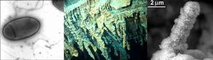 這種以氧化鐵為食的細菌是在鐵達尼號的沉船銹跡上發現的。它們