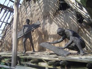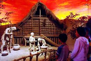 《河姆渡遺址出土文物展》 以300餘件文物精品為依託,配以模型、木雕、燈箱、照片等,展示了7000年前先民的生產生活內容和精神面貌,體現出先民的勤勞和聰明睿智。發掘現場展示區以發掘現場重建、乾欄式木構建築復原和生產生活再現等為主題。