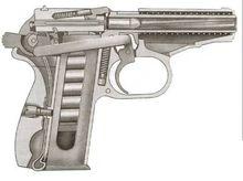 馬卡洛夫手槍及其彈匣馬卡洛夫手槍採用簡單的自由後坐式工作原理,結構簡單,性能可靠,成本低廉,在當年是同時代最好的緊湊型自衛手槍之一。射擊時火藥燃氣的壓力通過彈殼底部作用於套筒的彈底窩,使套筒後坐,並利用套筒的重量和復進簧的力量,使套筒後坐的速度降低,在彈頭離開槍口後,才開啟彈膛,完成拋殼等一系列動作。馬卡洛夫手槍的擊發機構為擊錘迴轉式,雙動發射機構。保險裝置包括有不到位保險,外部有手動保險機柄。馬卡洛夫手槍採用由固定式片狀準星和缺口式照門,在15-20米內時有最佳的射擊精度和殺傷力。其鋼製彈匣可裝8發PM手槍彈,彈匣壁鏤空,既減輕了重量也便於觀察余彈數,並有空倉掛機能力。