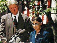 接受最高法院大法官提名1993年,美國最高法院懷特大法官(Byron R.White)退休,最高法院出 現了空缺。當時柯林頓政府的女法務部長珍妮特·雷諾(Janet Reno)向柯林頓舉薦金斯伯格。參議員以96票對3票通過了金斯伯格的確認。1993年8月10日,金絲伯格宣誓成為美國歷史上第二位女性、第一位猶太人女性最高法院大法官 。
