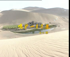 鳴沙山─月牙泉風景名勝區月牙泉的周圍是高高的沙山,中間有一個形似月牙的小湖。鳴沙山在晴天或有人從山上滑下時會發出聲響,所以叫鳴沙山,這裡還有一個奇特的現象,因為地勢的關係颳風時沙子不往山下走,而是從山下往山上流動,所以月牙泉永遠不會被沙子埋沒,被稱為沙漠奇觀。