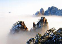 黃山的雲海自古黃山雲成海,黃山是雲霧之鄉,以峰為體,以云為衣,其瑰麗壯觀的“雲海”以美、勝、奇、幻享譽古今,一年四季皆可觀、尤以冬季景最佳。依雲海分布方位,全山有東海、南海、西海、北海和天海;而登蓮花峰、天都峰、光明頂則可盡收諸海於眼底,領略“海到盡頭天是岸,山登絕頂我為峰”之境地。