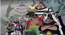 | 海賊團 | 黑鬍子海賊團 由拉非特、范·奧卡、芝沙斯·巴沙斯、希留、毒·Q、卡特琳娜·戴彭、聖胡安·惡狼、巴克斯·喬特、阿巴羅·皮薩羅、組成。全員都是臭名昭著的懸賞犯,也有很多大監獄中LEVEL6中被世人所不想提起的犯人們。 | 黑鬍子海賊團 | |