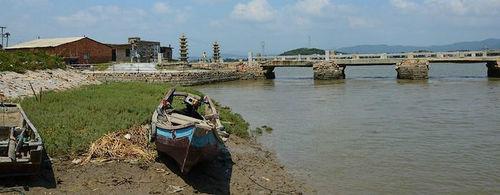 全國重點文物保護單位——海口龍江橋海口龍江橋,位於福清市海口鎮海口村西,橫跨龍江。建於宋政和三年至宣和六年,歷代均有修復。石構橋樑,跨于海口龍江上,東西走向,長476米,寬約4.6米,現存三十九墩,四十孔,舟型墩,墩長9.2米,高6米,寬3.6米。橋樑用9.5米,寬0.67-0.75米的條石鋪成,首尾互相扣合搭接。橋頭立一對八角七層樓閣式實心石塔,高5.05米,須彌座,葫蘆剎頂,塔壁每面浮雕佛像一尊。 1961年,福建省人民委員會公布海口龍江橋為第一批省級文物保護單位,2013年,被公布為第七批國家級重點文物保護單位。