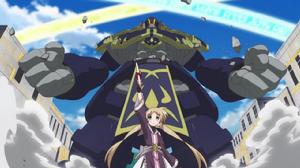 劇情描述:到了柯蘿娜和莉奧兩人的“追逐戰”由莉奧停止攻擊時,莉奧用魔法召喚出炎龍和雷龍組成的魔法“雙龍圓舞”出來戰鬥,而柯蘿娜也用魔法召喚出高達十幾米高的巨型魔像“哥萊亞斯”出來戰鬥。